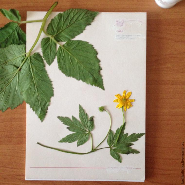 Когда закончите, уберите гербарий и дайте высохнуть краске. Это всё, творите вместе с ребенком и радуйте учителей!